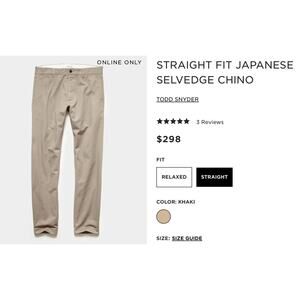 TODD SNYDER 30x32 STRAIGHT FIT JAPANESE SELVEDGE CHINO BUTTON FLY MEN SIZE 30X32