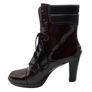 Tod's Dark Brown Patent Leather Lace Up Boots