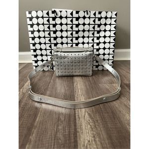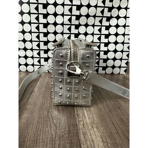 Embellished with silvertone studs, this metallic crossbody bag is crafted from luxe leather.