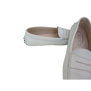 TODS Gommino Penny Loafers Bone White Leather Driving Shoes Size 38 EU 7 US