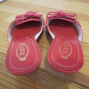 TOD'S Leather Top-stitched Kitten Heel Mules Slip On Size EUR 38.5 US 8.5