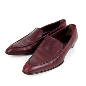 TOD'S REDDISH BROWN GENUINE LEATHER POINTED TOE LOW HEEL SLIP ON LOAFER SHOES 7