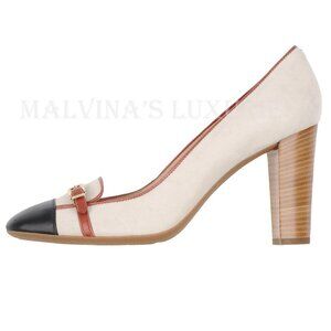 Unique Features: Classic Tod's Pumps with Capped Contrasting Toe and Belt / Buckle Detail. Stacked Heel