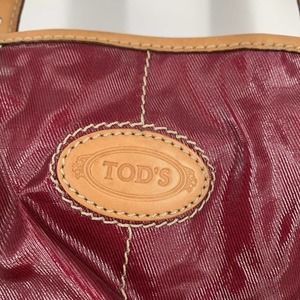 TOD'S Shoulder Hand Bag Purple Maroon PVC Leather Brown Accents Purse Pocketbook.