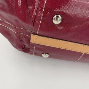 TOD'S Shoulder Hand Bag Purple Maroon PVC Leather Brown Accents Purse Pocketbook