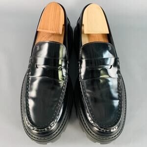 TOD'S Size 11 Black Patent Leather Lug Sole Penny Loafers Flats