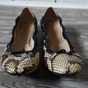 TOD’S Snake-Embossed Leather Ballerina Flats Size 9.5