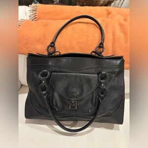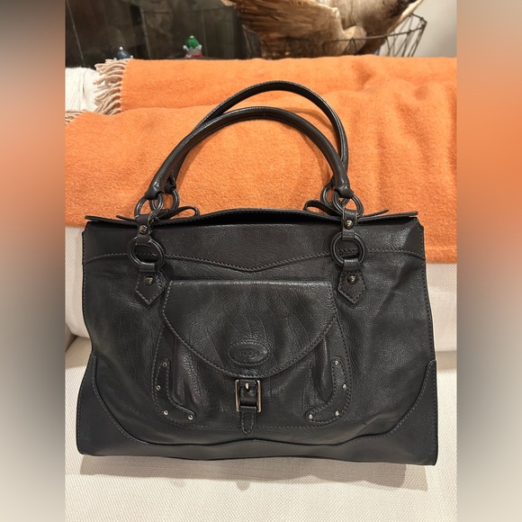 TODS Vintage Black Italian Leather Ring-Handled Satchel