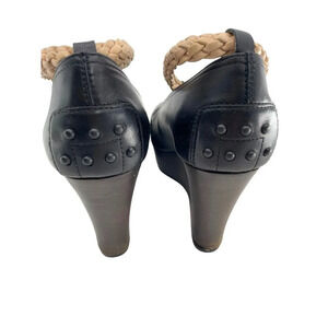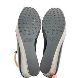 TOD'S Womens size US 7 Black Leather Platform Wedge Shoes Strap EU 37 Dust Bag