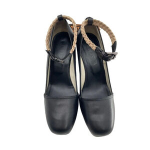 TOD'S Womens Black Leather Platform Wedge Heels Shoes Ankle Strap Size US 7with Dust Bag