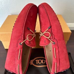 TOD'S unisex Laccetto Red slip-on suede driving Loafers size US6 EU 39-39 1/5