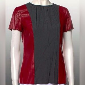 Stunning 💯 leather and 💯 silk , burgundy with black, short sleeve blouse with back zipper from TOD’s.