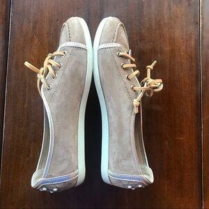 Tod’s suede lace up loafers. Tan suede with bronze / metallic lining and white gambini. EUC. Perfect for summer / fall. “Boat shoes”. Size 35.5.