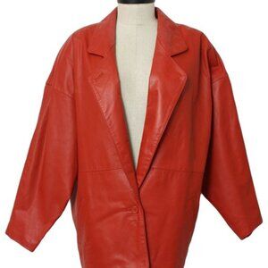 TOFFS (KOREA) LADIES RED VINTAGE GENUINE LEATHER (1) BUTTON LUXURY COAT/JACKET