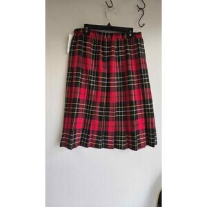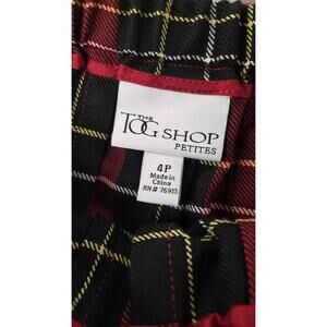 TOG Shop Petite Red & Black Plaid Midi Skirt - Pleated - Elastic Waist - Size 4P