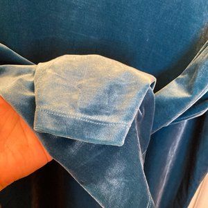 TOG teal blue velvet long sleeve turtle neck women sweater, gorgeous reflections. Material polyester spandex, length at back is 27", Size is Petite Large