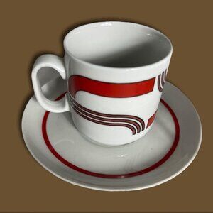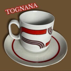 TOGNANA China Vintage Retro 4 piece Espresso Set Red and Brown