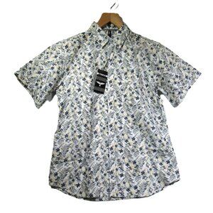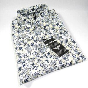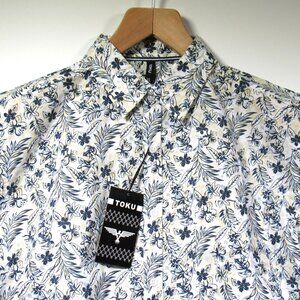 TOKU Men's S/S Shirt Floral Leaf Pattern White Size XL