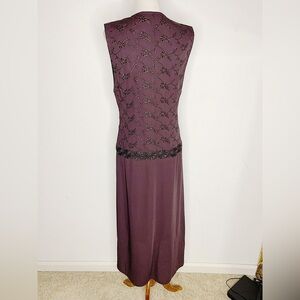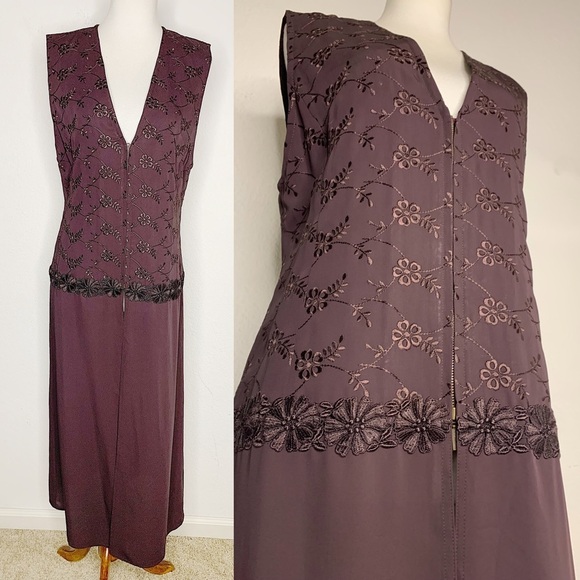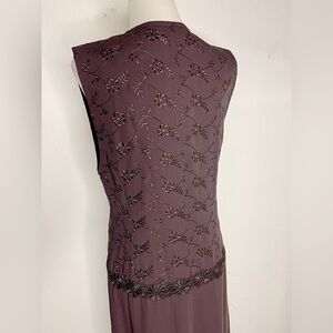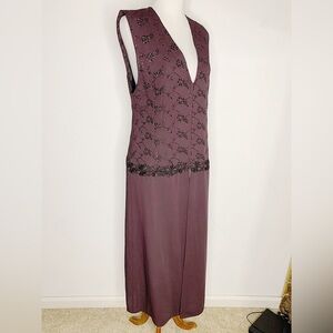 TOKUKO 1ER VOL Burgundy Floral Embroidered Crochet Sleeveless Tunic Dress Size 9
