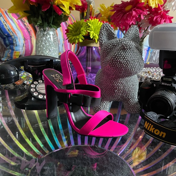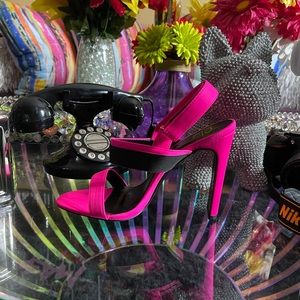 Casual neon pink and black heels!