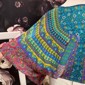 One of my absolute fave brands! Tolani pieces are always so elegant and the colors are extremely vibrant. This blouse is 100% silk!