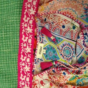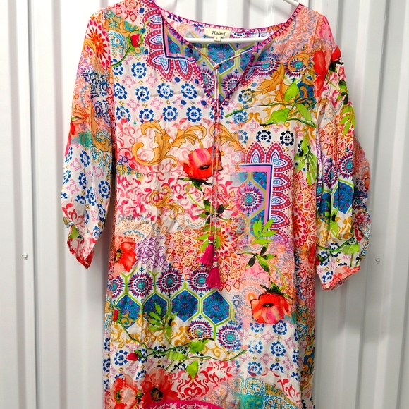 TOLANI GORGEOUS COLORFUL MIXED PRINTED TUNIC TOP with DETACHABLE SLIP SIZE SMALL