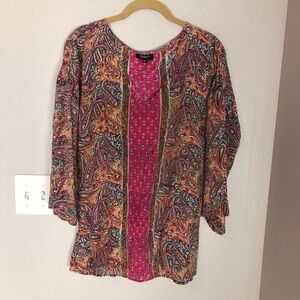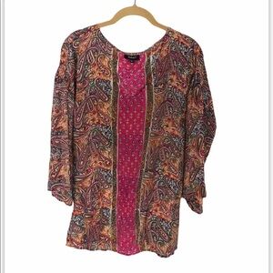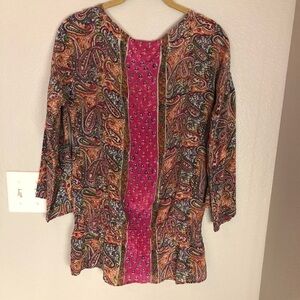 TOLANI Silk Elastic Waist Boho Paisley Blouse M