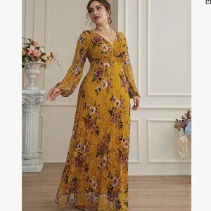 This TOLEEN Plus Size V Neck Rose Embroidery Mesh Formal Maxi Dress in Yellow, size 4XL, features intricate rose embroidery on a mesh fabric. The dress has a flattering V-neckline and long sleeves, perfect for formal occasions such as weddings or as a bridesmaid dress. Made from polyester, this elegant maxi dress is designed by TOLEEN and tailored for a regular fit, making it a stylish and comfortable choice for those who prefer a larger size.