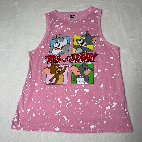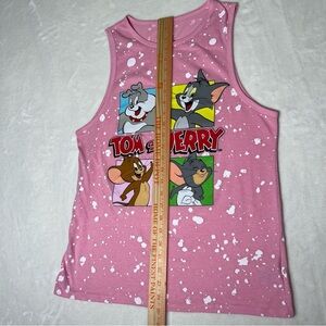 TOM AND JERRY Womens Graphic Tank Pink with White Speckles Design Size Small