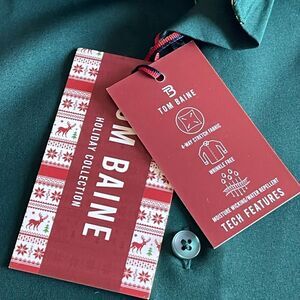 TOM BAINE Slim Fit Holiday Collection Button Down Dress Shirt Hunter Med NWT