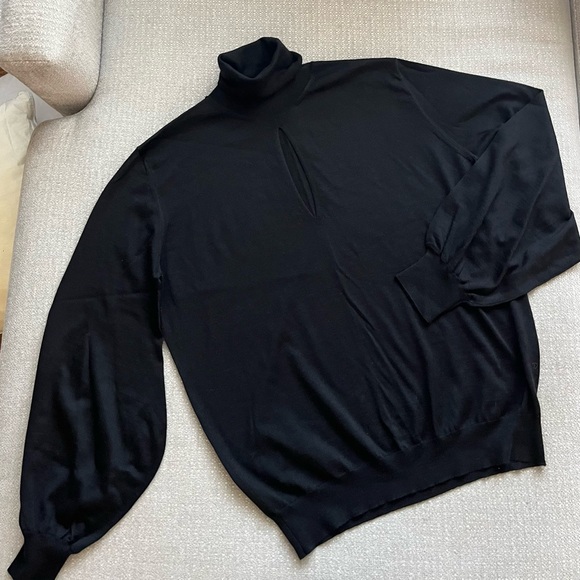 Reposhing this item only because I haven't worn it. it's in perfect condition. Dark navy blue turtleneck, w slight opening design in front. Absolutely stunning!