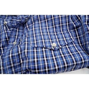 Pre-owned without tags TOM FORD Blue Check Print Button-up Dress Shirt Men Long Sleeve Size 44, 17 1/2. Elevate your wardrobe with this TOM FORD men's shirt, crafted from premium cotton with a classic blue plaid pattern. This stylish and versatile shirt features a button-down front, a point collar, and two chest flap pockets, making it a perfect addition for both casual and smart-casual occasions. The design is a nod to the timeless Western style, re-imagined with the luxury and quality expected from TOM FORD. Made in Italy, this shirt combines a sophisticated look with comfort and durability.