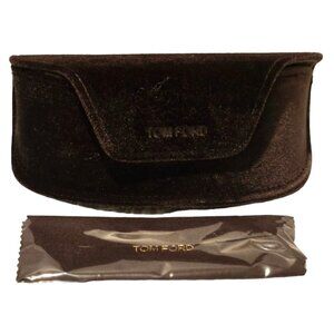 Luxurious Tom Ford sunglass case in rich brown velvet. Perfect for protecting your eyewear with style. Includes a soft cleaning cloth for maintaining pristine lenses.