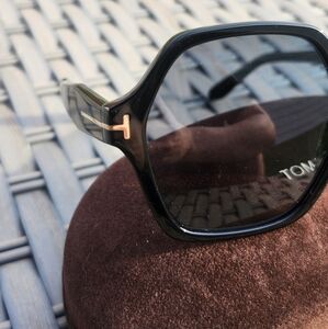 These bold sunglasses from TOM FORD are styled with a geometric silhouette and solid UV-protective lenses.
