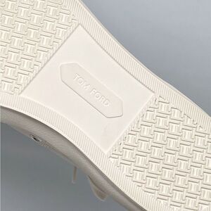 These low-top sneakers by Tom Ford are crafted of suede with a contrasting smooth leather stripe. They are grounded with a rubber sole.