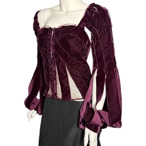 TOM FORD YSL 2002 Burgundy Velvet Corset Bustier Lace Runway Top 42 10 NWT