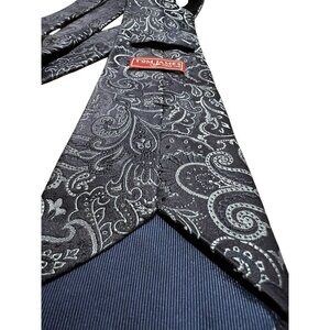 TOM JAMES Men's 100% Silk USA Tie Blue/Silver Paisley
