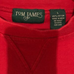 TOM JAMES Men’s Red Pullover Sweater Size L in excellent used condition. No rips or tears.
