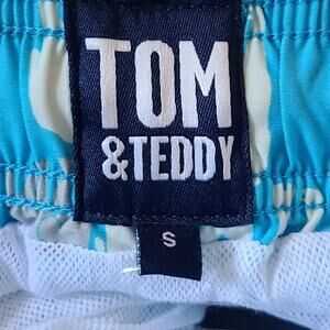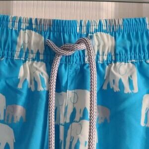 TOM & TEDDY Blue and White Elephants Classic UPF 50+ Quick Dry Swim Shorts Men's Size Small