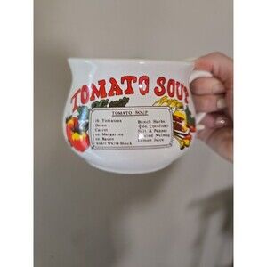 TOMATO SOUP Recipe Bowl Mug Handle Cup Ceramic No Brand 1 Side Print Vintage