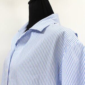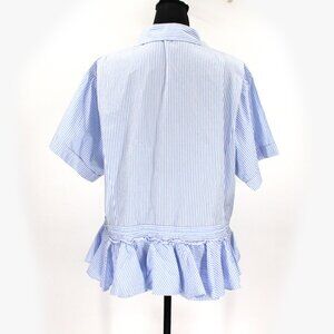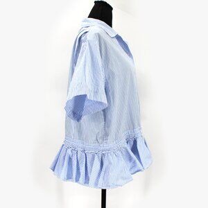 TOME NYC Blue White Pinstripe Drawstring Ruffle Hem Short Sleeve Top 12 Shirt