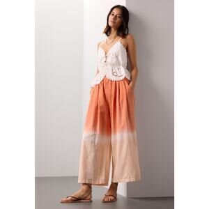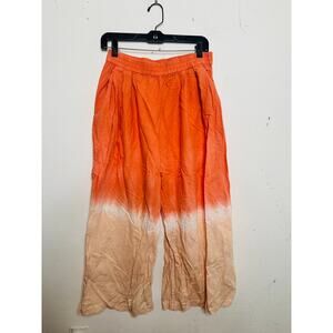 TOME Orange Ombré Linen Blend Dip-dyed Smocked Waist Wide Leg Pants size Medium