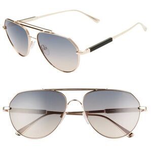 A classically chic and universally flattering aviator silhouette defines these Italian sunglasses. - 61mm lens width; 16mm bridge width; 145mm temple length - 100% UV protection - Adjustable nonslip nose pads - Nylon lenses - Metal/acetate - Made in Italy. Comes with velvet case, card of authenticity, and new unused lens fabric lens cleaner.