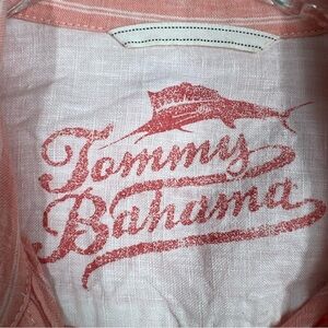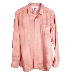 TOMMY BAHAMA 100% Linen Pink and White Striped Button Down long Sleeve Shirt