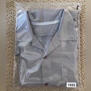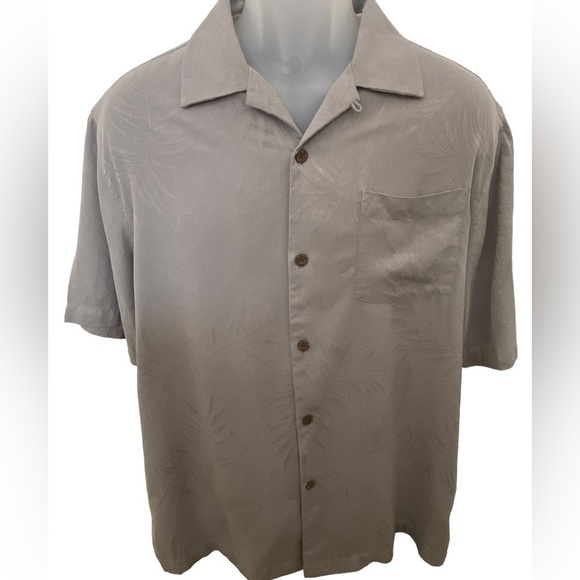 TOMMY BAHAMA 100% Silk Grey Floral Aloha Hawaiian Tropical Shirt Men M Medium