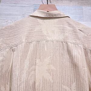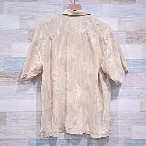 TOMMY BAHAMA 100% Silk Hawaiian Camp Shirt Khaki Palm Tree Vacation Mens Large