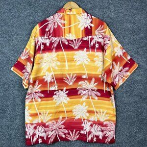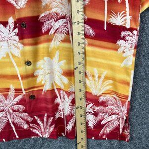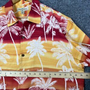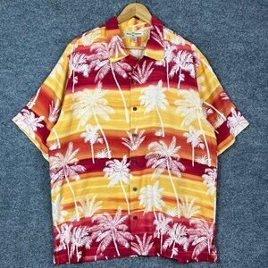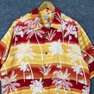 TOMMY BAHAMA 100% Silk Hawaiian Shirt All Over Print Men's Sz L Palm Tree