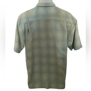 TOMMY BAHAMA 100% Silk Light Green Checkered Aloha Hawaiian Shirt Men M Medium