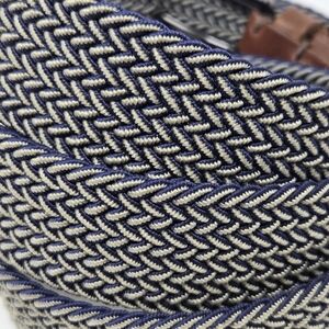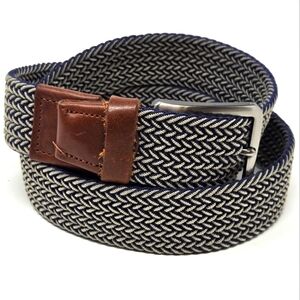 TOMMY BAHAMA BRAIDED WOVEN STRETCH BELT BLUE & KHAKI BROWN LEATHER END MEN L/XL