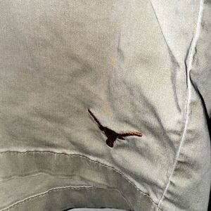 These are awesome shorts. There is a longhorn on the front leg. These have been gently worn